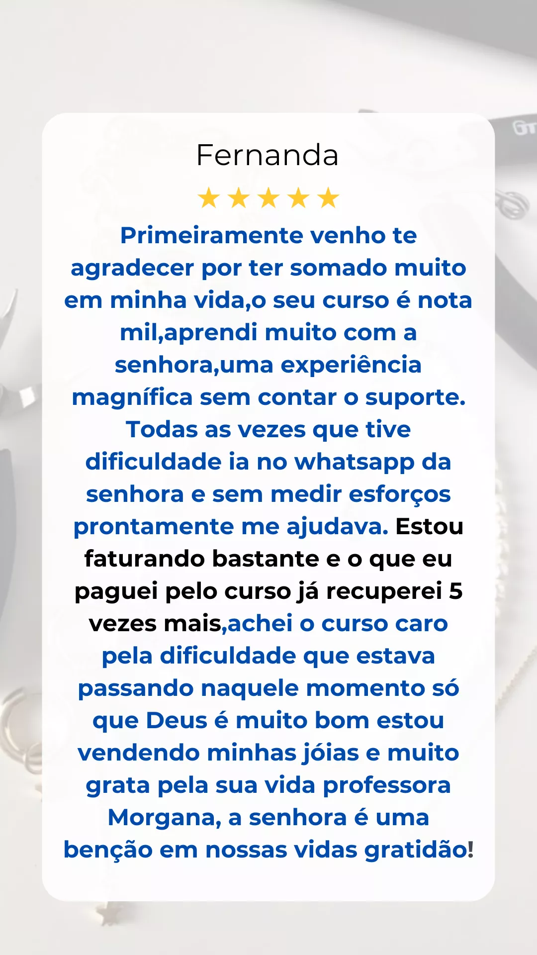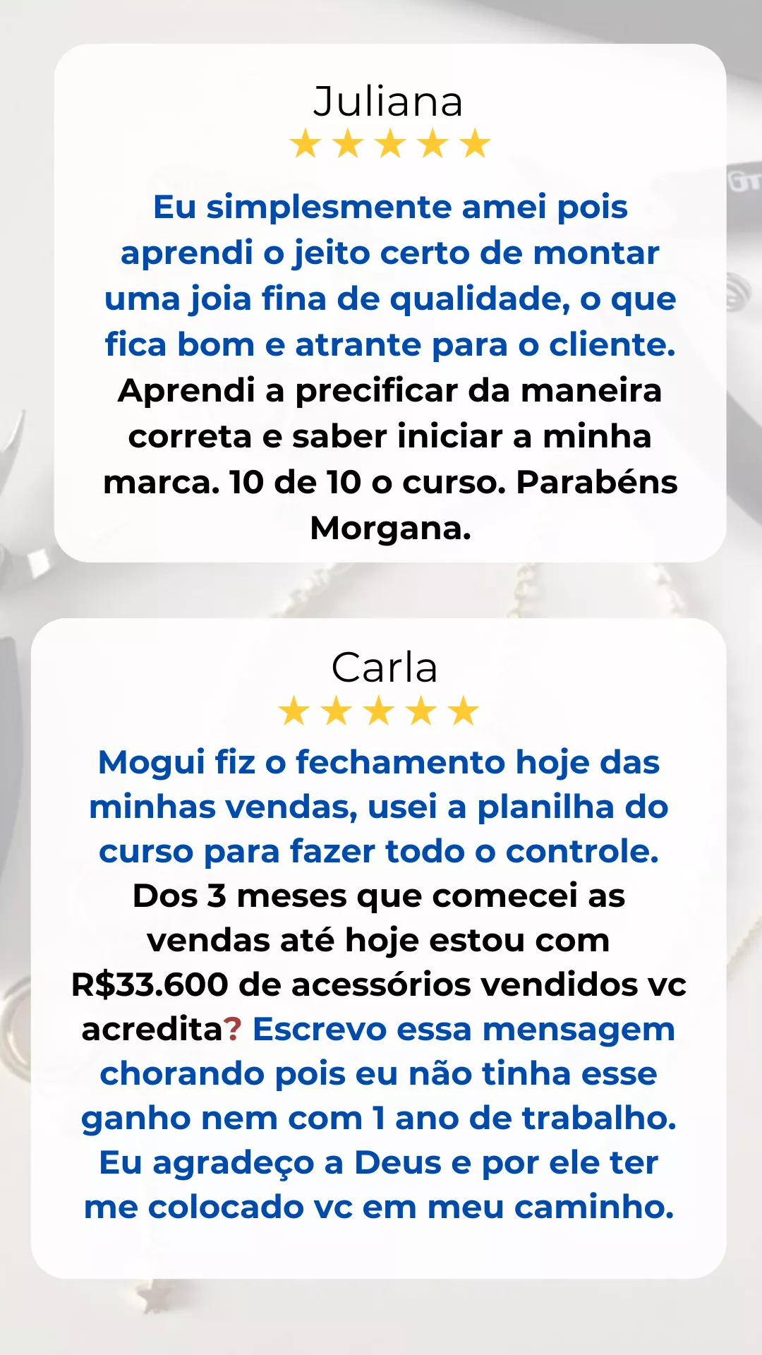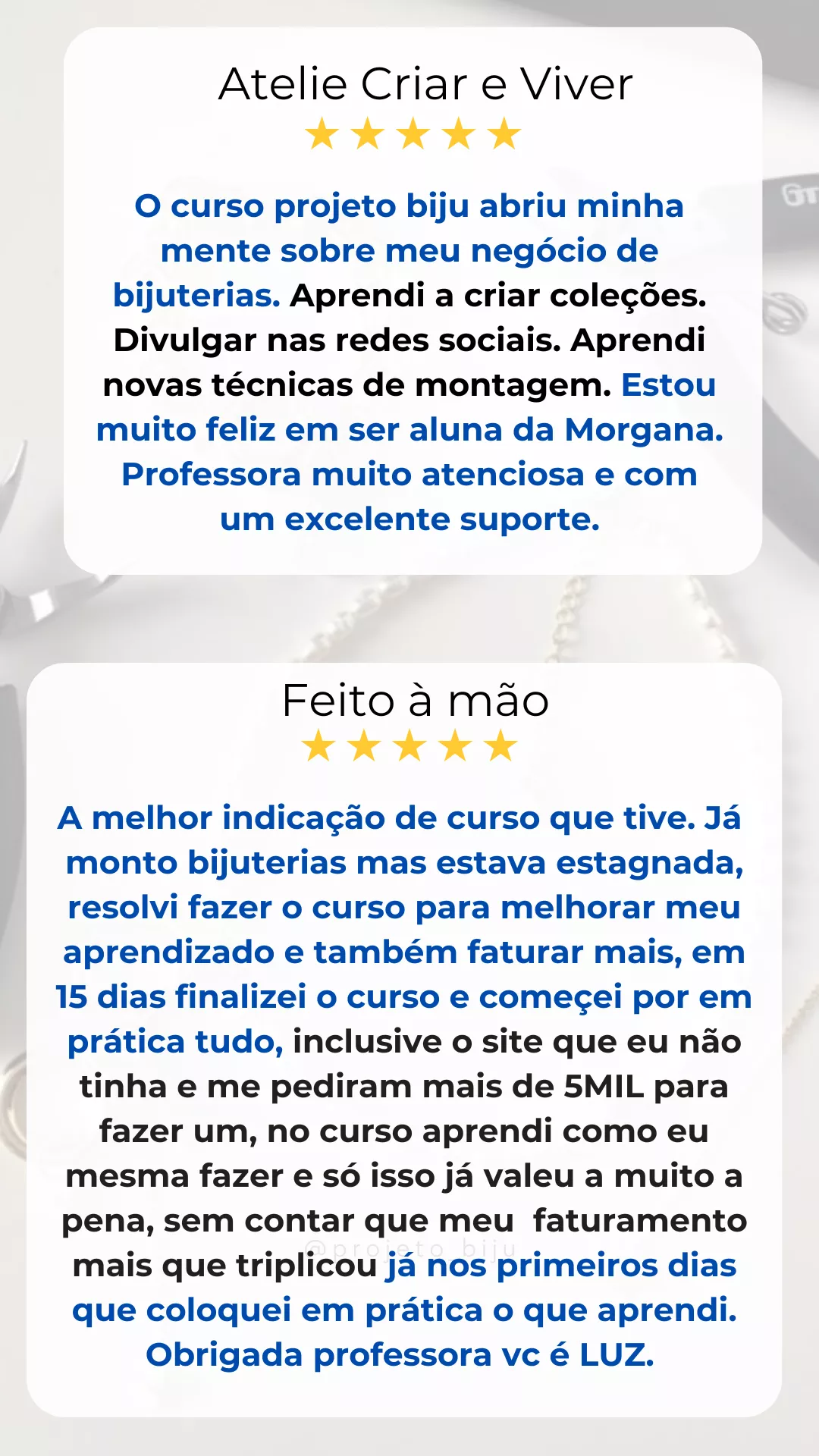 Não! Com as técnicas que ensino, você poderá montar qualquer tipo de acessório, incluindo bijuterias, semijoias, peças em prata.